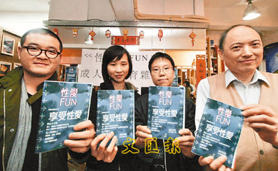 據(jù)香港大公報(bào)報(bào)道,紫藤3個(gè)月前招募20名義工出版免費(fèi)派發(fā)的《性愛!!!Fun》,刊物內(nèi)容主要包括介紹不同性用品、性經(jīng)驗(yàn)分享、由性工作者解答疑難的信箱,以及由專家分享性愛要訣等,預(yù)計(jì)會(huì)在月中派發(fā)約2000本創(chuàng)刊號(hào),派發(fā)地點(diǎn)包括紫藤、指定性商店和書店。市民可由今天起到紫藤網(wǎng)站下載。