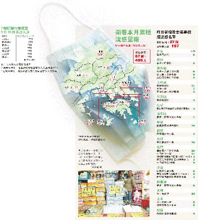據(jù)香港明報(bào)報(bào)道,在香港7個(gè)醫(yī)院聯(lián)網(wǎng)中,新界東和新界西的急癥室求診人次,為第二及第三多,分別達(dá)1280人次和920人次。反觀港島西急癥室求診人次偏低,只有380,灣仔律敦治醫(yī)院急癥室求診人次更稍微下降。醫(yī)管局呼吁,患流感市民可先到私家醫(yī)生或家庭醫(yī)生求診,毋須到急癥室求醫(yī)。
