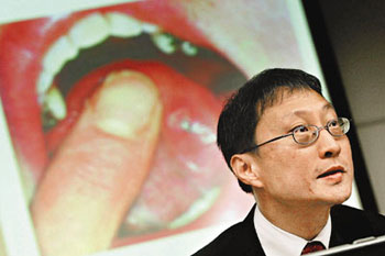 五月七日,香港衛生署衛生防護中心就近期流行的腸病毒EV-71型感染及手足口病的最新情況特別舉行記者會,衛生防護中心總監曾浩輝醫生于會上向傳媒介紹本地及鄰近周邊地區的最新情況。圖為曾浩輝醫生展示衛生署印制了相關的宣傳海報,加強對兒童個人衛生的宣傳。 中新社發 鄧慶樂 攝