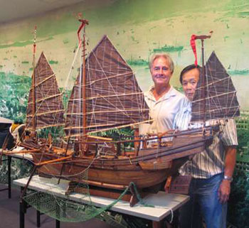 1955年吳十七突發奇想,根據幼時記憶開始制作模型,歷時一年多。模型按照原來帆船約1:25的比例制作,他表示,原“摻繒”的實際長度約100尺,這模型的相似度近八成。