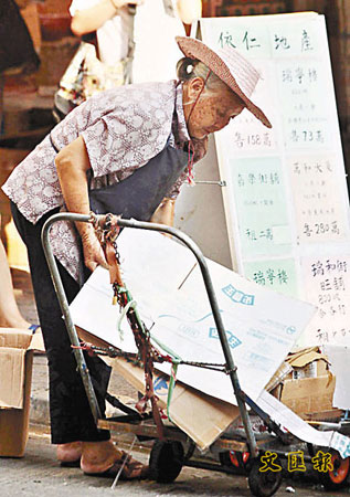 負責(zé)調(diào)查的浸大社會工作系助理教授李建賢表示,雖然拾荒者仍以長者為主,但發(fā)現(xiàn)天水圍區(qū)的中年拾荒者開始冒起,“現(xiàn)在經(jīng)濟開始差,失業(yè)率或會上升,新界西北地區(qū)已出現(xiàn)中年拾荒者加入競爭,趕走不少公公婆婆,令長者生活更慘。”