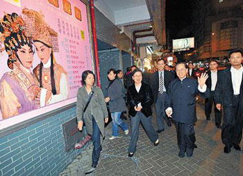 曾蔭權在過去兩個年度公布《施政報告》時,都特別提及要“致力保存及發展粵劇這門本土傳統藝術”,并承諾會“改善香港文化服務和場地的營運和管理”,積極保存和弘揚這“非物質文化遺產”。