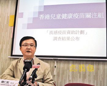 賴仁彪說:“根據(jù)以往針對高危人士及低收入人士的流行性感冒防疫注計劃,在特區(qū)政府免費的資助及號召下,接種針數(shù)達(dá)27萬針,與現(xiàn)時8萬針相差很大。”最終若由特區(qū)政府免費為兒童打針,他相信接種率可提升至90%。