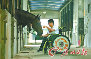 就在前不久,具有15年騎馬經(jīng)驗,在惠州開馬場的香港人夏先生和夫人被彭裕連以高分獲得三項冠軍、為中國獲得殘奧會馬術(shù)比賽入場券所感動,毅然出資300萬港元給彭裕連購買兩匹好馬參賽。興奮之極的彭裕連趕忙去歐洲,與自己的新朋友一起磨合訓(xùn)練了四十多天,還參加了當(dāng)?shù)氐囊恍嵘肀荣悺?/p>