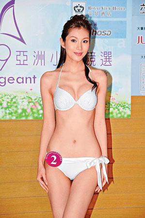 中新網10月13日電 據香港《星島日報》報道,2009年亞洲小姐競選一眾候選佳麗,日前往廣州出席活動,由于大熱門王希瑤抱恙缺席,故只有18位佳麗出席,卻造就了佳麗劉伊心成為全場焦點,皆因她身材出眾,玩跳繩、呼拉圈及蹲下吹汽球時,偶爾春光乍泄,吸人眼球。