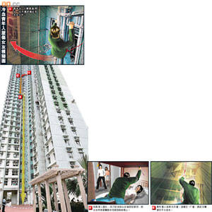 中新網11月8日電 香港藍田昨晨發生罕見襲擊案。一名冷血青年在二十多層高的大廈外墻以飛索亡命游繩,摸黑攀窗潛入前女友睡房,向她頭部及胸部狂插九刀,咽喉割開,刀刀奪命。