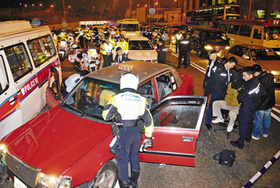 中新網(wǎng)1月25日電 香港一名司機(jī)涉嫌以偷來(lái)的士做無(wú)本生意多時(shí),24日晚在銅鑼灣因沖紅燈惹起交警注意后逃走,結(jié)果掀起一幕由港島追到九龍全長(zhǎng)22公里的警匪飛車追逐戰(zhàn),賊的士后于東隧九龍出口收費(fèi)廣場(chǎng)撞毀一部電單車及一部警車后始停下,亡命司機(jī)當(dāng)場(chǎng)束手就擒,但共有7名警民受傷送院,包括的士司機(jī)。