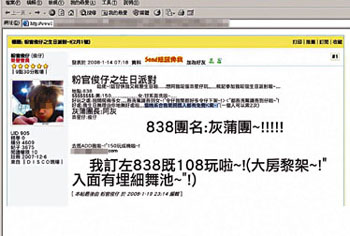 據(jù)悉,“粉官俊仔”被捕后已承認(rèn)于網(wǎng)上發(fā)布有關(guān)資料,暫準(zhǔn)保釋候查,需于2月底再向警方報(bào)到。事緣本月中,該男童以“粉官俊仔”網(wǎng)名在互聯(lián)網(wǎng)某討論區(qū)留言,發(fā)起“粉官俊仔之生日派對”,表示將在2月1日在深圳“838”舉行生日派對,征求網(wǎng)友報(bào)名,男性收費(fèi)150元,女性免費(fèi)。