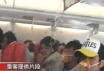 短片顯示,有小孩在哭,但大部分乘客都能保持鎮定。一位教院學生說,當時見到有對夫婦,吻了對方一下,并說:“我們來生再做夫妻。”結果,飛機在15分鐘后順利降落首都機場,機艙內響起一陣掌聲,有人說:“我們成功降落了。”