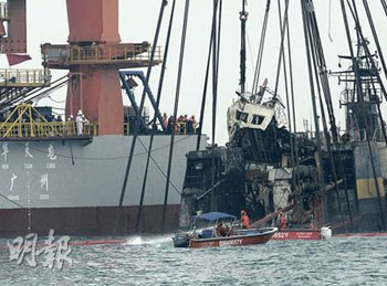 另有消息傳出廣州打撈局人員在晚上8時進行打撈工序期間,在沉船拖纜機左右兩邊先發現2具尸體,其后在船艙再發現2具尸體,但由于暫時不適合搜救,所以港方搜救人員暫未將尸體撈起。