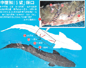 另一方面,海狼在海洋公園已居住近10年,由3吋長養(yǎng)到現(xiàn)在1米多長,從無襲擊其它魚類紀錄,故相信這次是“意外”,海狼只是與新引入的中華鱘發(fā)生小摩擦或碰撞而導(dǎo)致這反射式行為,而根據(jù)“5號”身上的4處傷口,雖然最長的達16厘米,但傷口不深,顯示海狼非刻意攻擊,只是尖牙將“5號”咬傷。