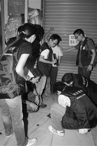 圖:澳門司警在行動中截獲一名逃走的內地男子。(圖片來源:澳門日報)