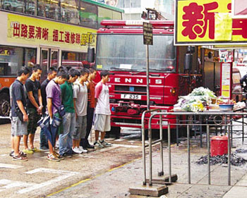 中新網8月12日電 據香港文匯報報道,陰沉天空下,凄迷細雨中,日前剛剛發生5級大火的香港嘉禾大廈前,素潔的鮮花堆成小山,寄托著對舍己救人的消防英雄蕭永方、陳兆龍的無限崇敬和哀思。