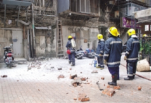 電力公司派員關閉電箱電源,附近8戶商號受影響停電。手持盾牌的消防員進入大廈了解情況,初步證實沒有再爆炸的危險。消防員在大廈范圍搜索,發現一名住在金來大廈的老婦受驚過度,需由救護車送院檢查。