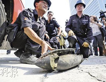 由于鄰近商業(yè)大廈,警方先將炮彈移往近海地方,再兩度引爆,事件中無人受傷。