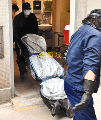 葵涌曉葵樓懷疑畏罪自殺的老翁由仵工送往殮房。(圖片來源:文匯報)