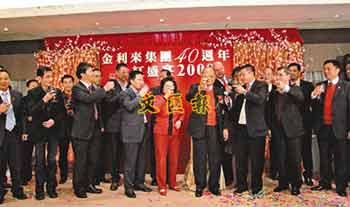 中新網(wǎng)2月18日電 曾憲梓創(chuàng)辦的金利來集團已成立40周年,15日晚筵開40席慶祝,當(dāng)晚更是曾憲梓74歲壽辰,曾氏一家大小俱盛裝出席,集團高層及員工代表紛紛送上生日祝福,晚宴上曾憲梓更是與大家分享創(chuàng)業(yè)及自己的人生志向。