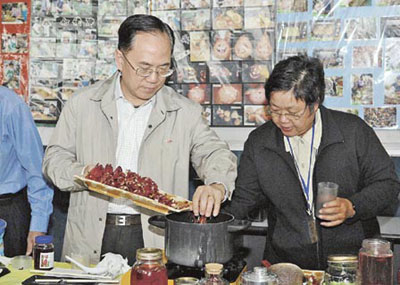 曾蔭權隨手拿進嘴里吃的,就是圖中的香草洛神葵。當他知道要經烹調才能夠食用,就按園友指示把香草放入煲內煮成果醬。(圖片來源:香港明報)