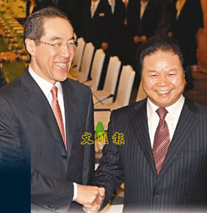 在會議開始前,“兩兄弟”即主動向在場采訪的記者拜個早年,又預期會議定必成功。湯炳權笑說,很高興香港在回歸10周年有輝煌成就,而香港于07年經濟又快又好地發(fā)展,人民安居樂業(yè)。他坦言,此際要說的還是以往那一句:“香港好,廣東好;廣東好,香港更好!