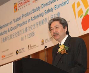 中新網1月10日電 “最新玩具安全指引及遵行安全守則范例”研討會9日在第34屆香港玩具展上舉行。財政司司長曾俊華出席是次研討會,他在發表主題演講時說,港玩具商面臨多項挑戰。來自內地的官員和美國商會領袖在研討會上介紹了兩地最新的產品安全法規。