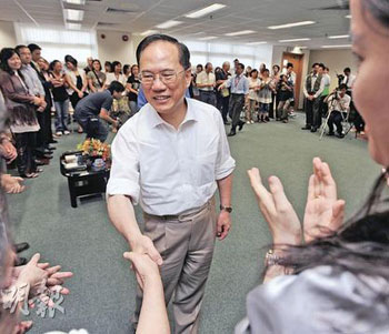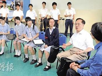 曾蔭權(右)與家長及學生就教育問題交換意見。(圖片來源:明報)