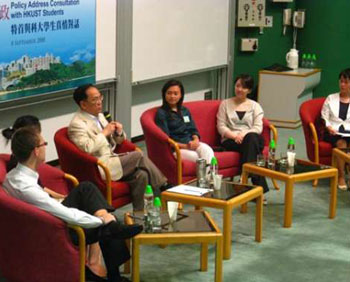 特首曾蔭權(quán)與學(xué)生代表對話。(圖片來源:大公報)