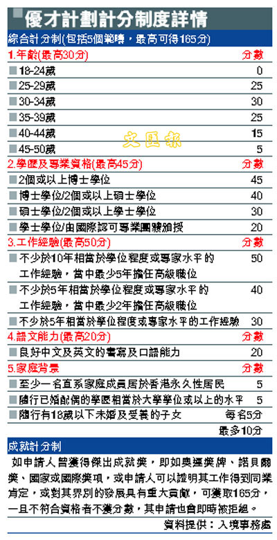 “綜合計分制”最新適用的最低及格分數是80分,有興趣申請的人士,應先評估其個人資歷是否已達到最低及格分數,才提交申請。