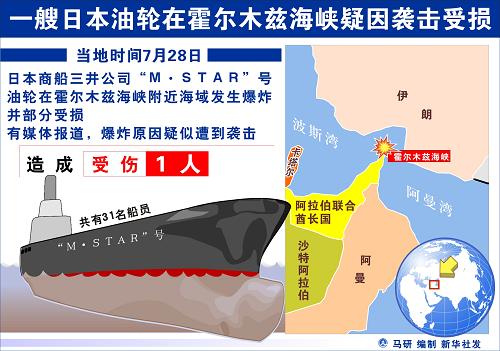 日本國土交通省28日發(fā)布通報,日本商船三井公司所屬M·STAR號大型油輪當?shù)貢r間28日零時30分左右在行經霍爾木茲海峽時發(fā)生爆炸,事發(fā)海域屬于阿曼領海。爆炸導致一名船員受傷,船體后部受損,但沒有造成原油泄漏。有船員稱,油輪疑似遭到襲擊。爆炸事件發(fā)生后,M·STAR號轉而駛往阿聯(lián)酋富查伊拉港。