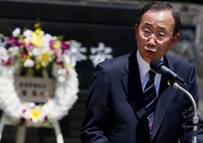 中新網8月5日電 據日本共同社網站報道,正在日本訪問的聯合國秘書長潘基文5日上午前往曾遭受原子彈轟炸的長崎。針對核爆受害者正邁向老齡化一事,潘基文向全世界發出呼吁,稱應盡早實現“無核武世界”。這也是他作為在職的聯合國秘書長首次訪問長崎。