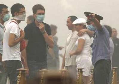 截至8日,俄羅斯全境森林大火火情繼續緩解,在燃燒的554處火點中有362處得到控制。 不過莫斯科因為山林野火及周邊的泥煤沼田燃燒引起的刺鼻煙霾,使得空氣中的二氧化碳懸浮微粒超標5、6倍,當局呼吁民眾最好待在室內,如要外出,也務必要戴上口罩。衛生當局說,目前莫斯科的污染程度有如一天抽上好幾包香煙。