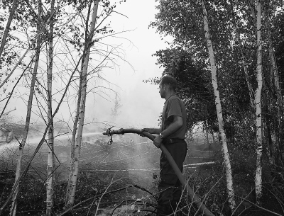 圖為一名消防隊員13日在莫斯科州沙圖拉地區一處泥炭火災發生地滅火。記者 張光政攝