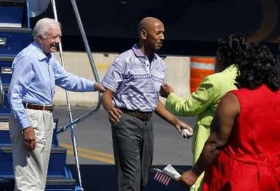 卡特25日抵達(dá)平壤,并與朝鮮最高人民會議常任委員會委員長金永南進(jìn)行了交談。美國官員稱,卡特此次訪朝是一次“私人性質(zhì)的人道主義式訪問”,只是為了幫助戈麥斯獲釋。