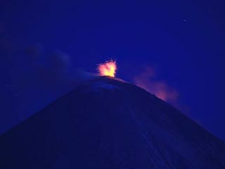 報道稱,火山彈噴發高度距離火山口500米,在黑夜觀測十分明顯。噴發出的熾熱巖漿變成火山灰被拋出2公里高;鹕絺鞒龅木薮筠Z鳴聲遠在40公里外都可聽到?肆蟹蚧鹕阶越衲8月就開始處于活躍狀態,09年11月中旬開始噴發出的火山灰布滿了火山口,當時就有巖漿流出。