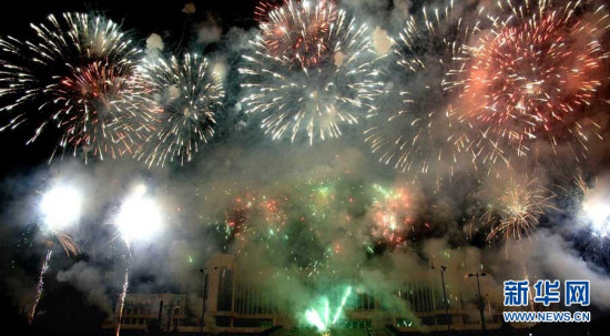 當?shù)貢r間8日晚上,朝鮮首都平壤舉行了盛大的焰火表演。朝鮮最高人民會議常任委員會委員長金永南等朝鮮領導人觀看了焰火表演。