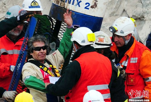 據報道,快到當地時間13日上午9點時,現年56歲的喬治.加利古洛斯(Jorge Galleguillos)順利升井,成為智利圣何塞銅礦第11名被營救出來的被困礦工。