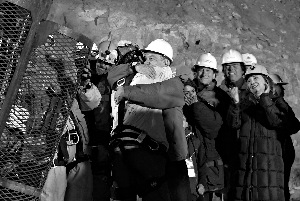 12日晚,從營救行動正式開始,智利總統皮涅拉就一直守在現場。當阿瓦洛斯從“膠囊”中走出來時,守在洞口的皮涅拉立即與這名渾身還臟兮兮的礦工緊緊擁抱。