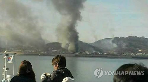 仁川海警延坪派出機構代表金云韓(音)說,山上和整個村莊彌漫著煙霧。居民已經回避到防空洞,不清楚是否有人在滅火。