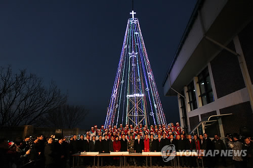 韓國國防部則就點燈一事稱,位于京畿道愛妓峰上的圣誕樹將會繼續點燈到明年1月8日。