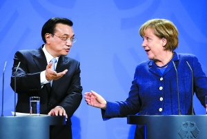 “中德關(guān)系不僅對我們雙邊,而且對中歐乃至于對世界都有重要意義!崩羁藦(qiáng)介紹說,剛才我與默克爾總理舉行了富有成果的會談,討論和規(guī)劃了未來一個(gè)時(shí)期中德合作的思路與重點(diǎn),就深化中德戰(zhàn)略伙伴關(guān)系達(dá)成重要共識。我們一致同意保持兩國總理年度會晤機(jī)制,加強(qiáng)各層次磋商交流,推進(jìn)經(jīng)貿(mào)、農(nóng)業(yè)、城鎮(zhèn)化、人文等領(lǐng)域合作,密切兩國人民的相互了解和友誼。這些舉措將有力推動兩國關(guān)系發(fā)展。