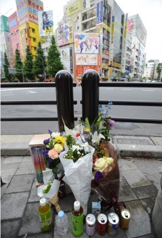據日本《每日新聞》6月8日報道,2008年,東京秋葉原步行街發生一起當街砍人事件,共造成7人死亡,10人重傷。8日,事件迎來了發生五周年紀念日。曾是派遣公司職員的犯罪嫌疑人加藤智大以殺人罪被起訴,一審判決和二審判決均為死刑。在事件現場的十字路口的一個角落,從8日一早就開始有人供奉鮮花,并雙手合十祈禱。
