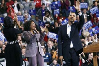 奧普拉是美國著名的脫口秀節目主持人,她的美國觀眾群人數接近5000萬。她被媒體譽為美國、甚至全世界最有影響力的女人之一。奧普拉在5月份表態支持奧巴馬的總統競選努力,在9月份還親自為奧巴馬主持一次籌款活動,為奧巴馬籌得300萬美元。