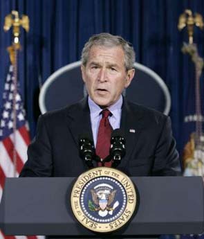 中新網12月28日電 據法新社報道,巴基斯坦前總理貝-布托27日在競選集會上遭到炸彈襲擊,不治身亡。圖為布什譴責貝-布托遇刺事件。(關新)