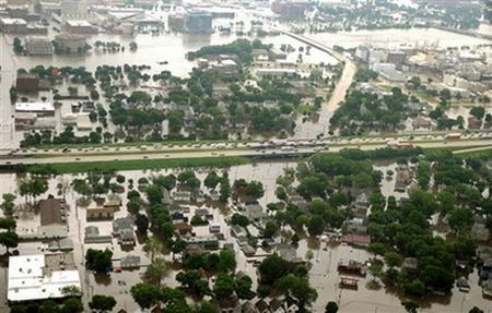 在達文波特的國家氣象部門氣象學家布萊恩-皮里斯稱:“這是一個我們從未遇到過的情況,這一事件超出了所有人的想像。”在錫達拉皮茲市應對不斷上漲的洪水時,愛荷華州的其它城市已警覺地觀察到河流的水位由于昨晚的風暴而上漲,昨晚的風暴給愛荷華州中西部地區帶來了12.7厘米的降水。