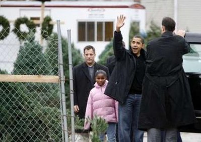 奧巴馬當(dāng)天帶兩個(gè)女兒和女兒的一個(gè)朋友,到芝加哥南區(qū)一個(gè)圣誕樹(shù)市集上,物色今年家里要用的圣誕樹(shù)。