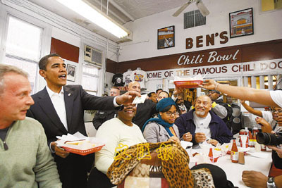 奧巴馬還在芝加哥出任參議員時,已經(jīng)常在鬧市中出現(xiàn),毫無架子。分析期望奧巴馬能一改現(xiàn)任總統(tǒng)布什甚少與市民打成一片的作風(fēng),多與民眾交流。
