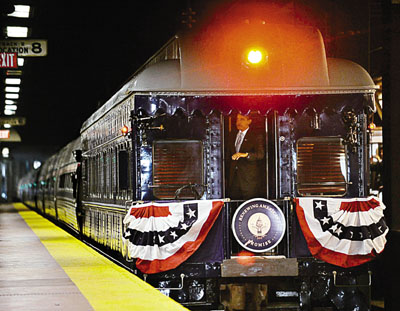 奧巴馬昨天在費城的第30街火車站登車,開始他向西南面華盛頓進發的旅程。與林肯不同,因為后者當年由家鄉伊利諾伊州出發,需時長得多。奧巴馬在出發前的演說中表示,國民要締造新“獨立宣言”,從偏狹的意識形態中團結,又指國家正面對史無前例的挑戰。