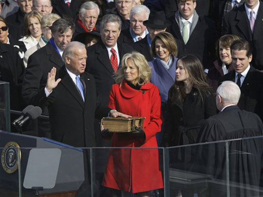 中新網(wǎng)1月21日電 當(dāng)?shù)貢r間1月20日上午11點(diǎn)56分(北京時間21日凌晨0點(diǎn)56分),美國第56屆總統(tǒng)就職典禮開始。在最高法院法官約翰.保羅.史蒂文斯陪同下,新一屆美國政府副總統(tǒng)拜登宣誓就職。