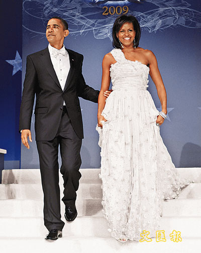 中新網1月22日電 美國總統奧巴馬的就職禮吸引全世界目光,他的身邊人同樣驚艷全球。第一夫人米歇爾當日身穿破格的檸檬綠套裝出席就職禮,贏得時裝界贊譽;晚上再換上一襲純白雪紡晚裝,與丈夫領跳第一舞,艷壓全場。據香港《文匯報》綜合外電報道,兩套服飾非大品牌出品,前者由古巴裔時裝設計師托萊多設計,后者由紐約華裔設計師吳季剛操刀,盡顯米歇爾眼光獨到,亦體現了奧巴馬政府不分種族的理念。