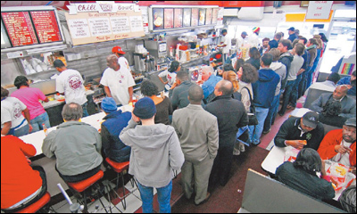 據《華盛頓時報》3月1日報道,U街是華盛頓最大的黑人社區,也是全美國歷史最悠久的非洲裔社區。自從美國總統奧巴馬和華盛頓市長阿德里安·芬蒂1月10日品嘗了這里“班氏餐館”的“半支香煙”(半截豬肉半截牛肉)熱狗后,這里的熱狗銷量一下子增加了兩倍,人們不得不排隊等候。