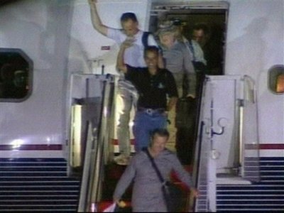 中新網4月16日電 據美聯社報道,曾與索馬里海盜“親密接觸”的美國“梅爾斯克•阿拉巴馬”號(Maersk Alabama)船員于當地時間16日凌晨自肯尼亞乘坐專機返回美國,受到熱情的歡迎。